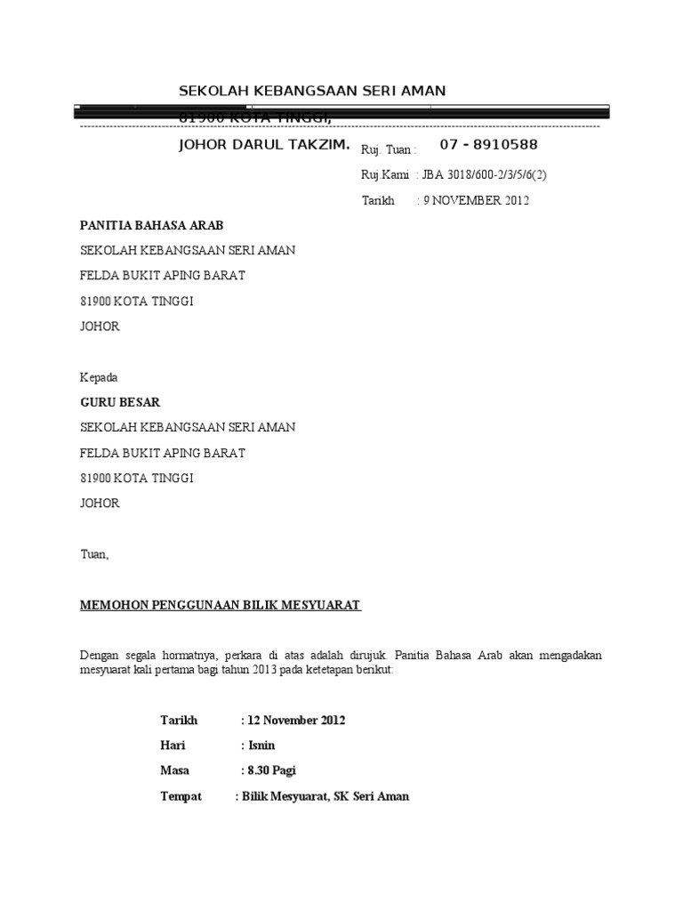 Surat rasmi permohonan menggunakan dewan sekolah frasmi. Surat rasmi permohonan menggunakan dewan terengganu z. Contoh format surat panggilan mesyuarat.